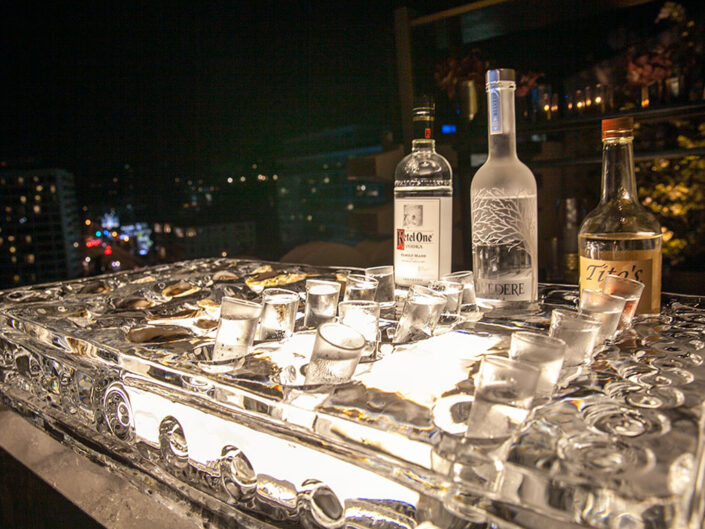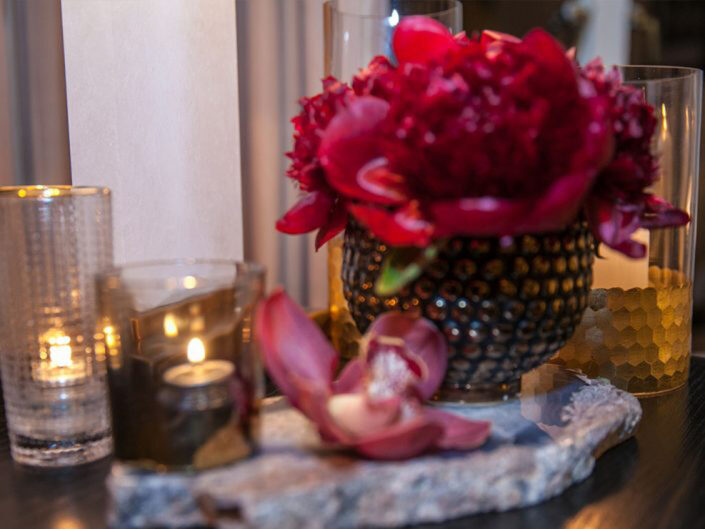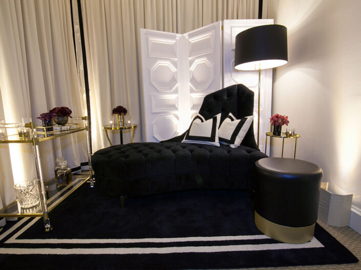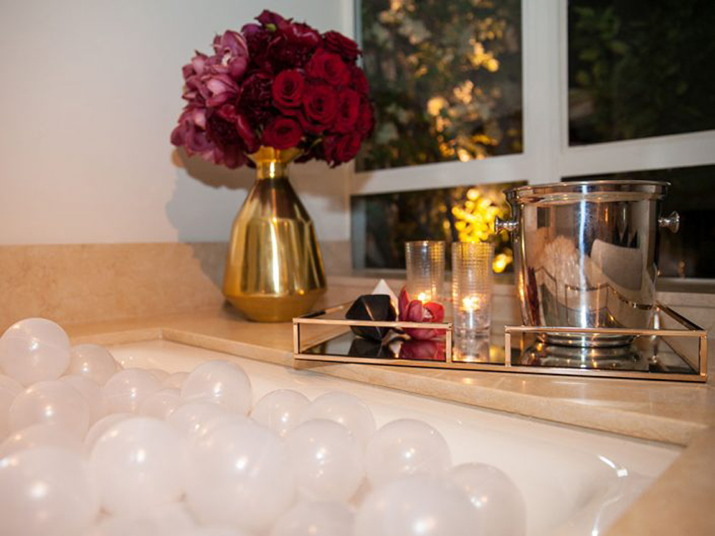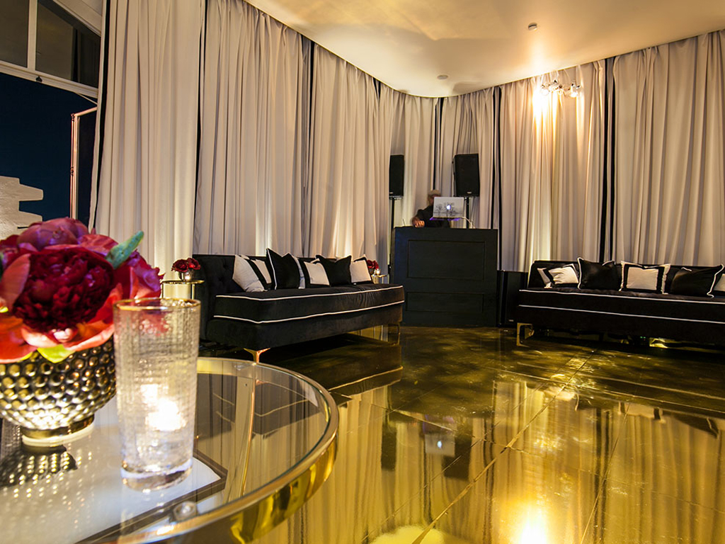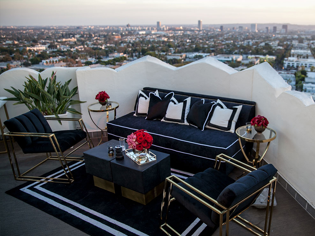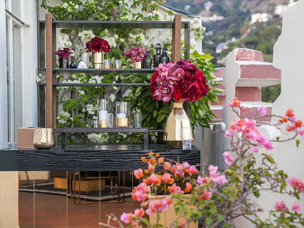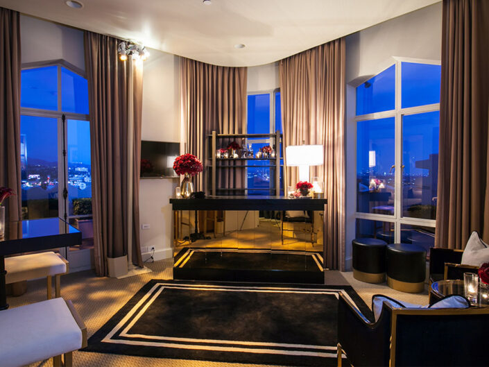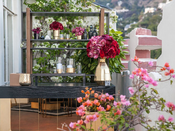 To celebrate the milestone 50th birthday of a powerhouse entrepreneur and extraordinary woman, guests were whisked away to the iconic Sunset Tower penthouse, perched above the legendary Sunset Strip. Greeted with champagne and cocktails served over diamond-shaped ice, they stepped into a fully transformed suite that blended classic Hollywood glamour with a fresh, modern twist. Designed in a striking palette of black and white with luxe gold accents and bold pops of fuchsia, the space was divided into two distinct areas -each offering guests the chance to lounge, dance, sip, savor, and create unforgettable memories. The wraparound three-sided terrace featured elevated vodka and raw bar stations, all set against a breathtaking panorama that stretched from downtown Los Angeles to the Pacific Ocean, with sweeping views of Hollywood and the glittering hills beyond.