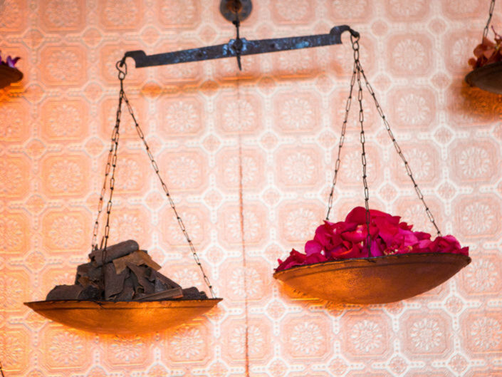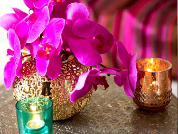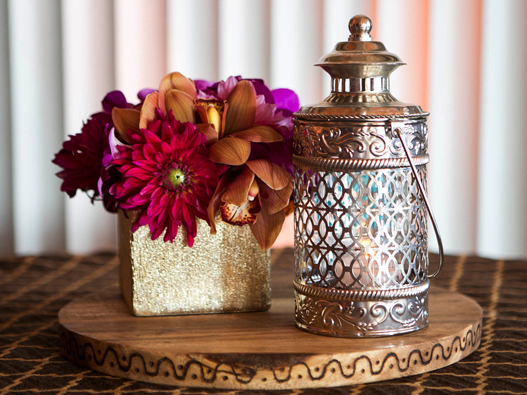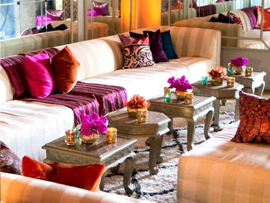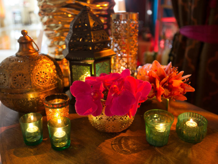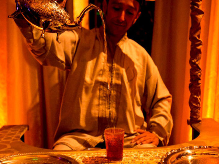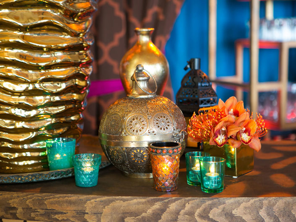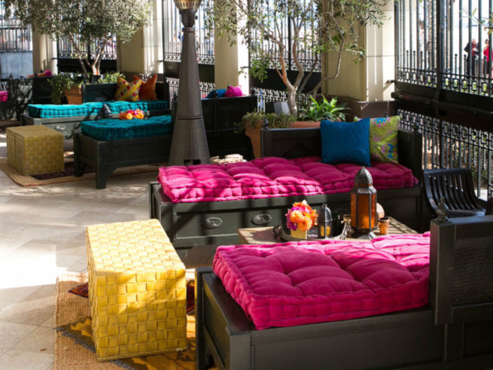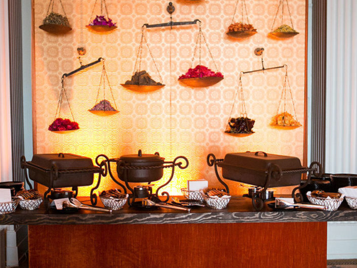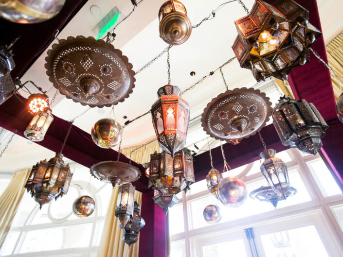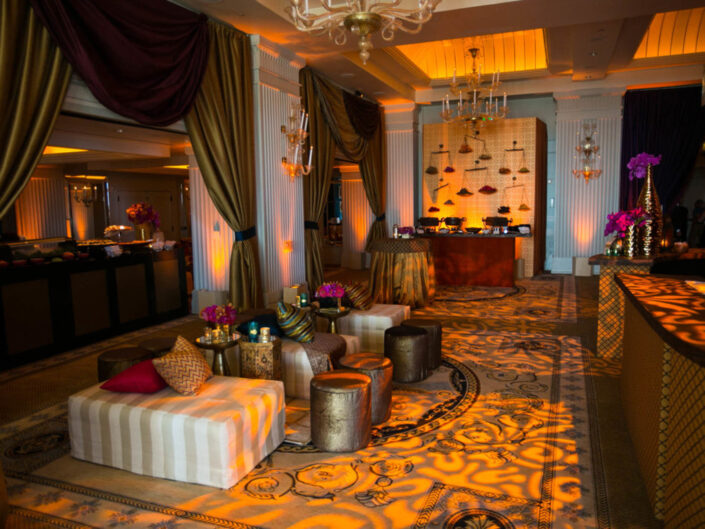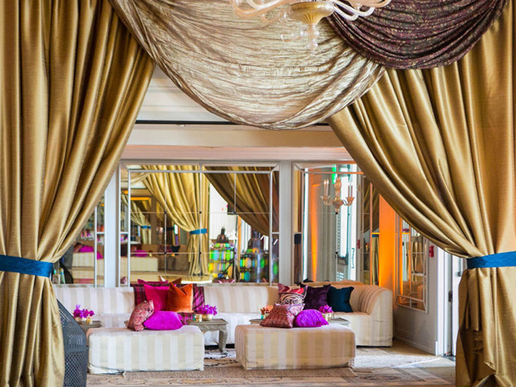 Set against the coastal backdrop of Casa Del Mar in Santa Monica, this Moroccan-inspired gala transported guests to a world of vibrant color and exotic elegance. The ocean-view patio featured plush daybeds in jewel tones, while the ballroom was transformed with rich draping in gold, indigo, and burgundy—creating intimate, luxurious lounges. A custom azure-draped bar with a gilded geometric base welcomed guests with signature cocktails. Inside the foyer, peacock plumes, glowing lanterns, and vivid florals spilled from faceted golden vases. Overhead, Moroccan lanterns floated above the DJ booth, alongside a striking wall of spices displayed on scales, evoking the ambiance of an authentic spice market. Throughout the evening, guests enjoyed flavorful Moroccan cuisine and eclectic entertainment that made for an unforgettable escape by the sea.
