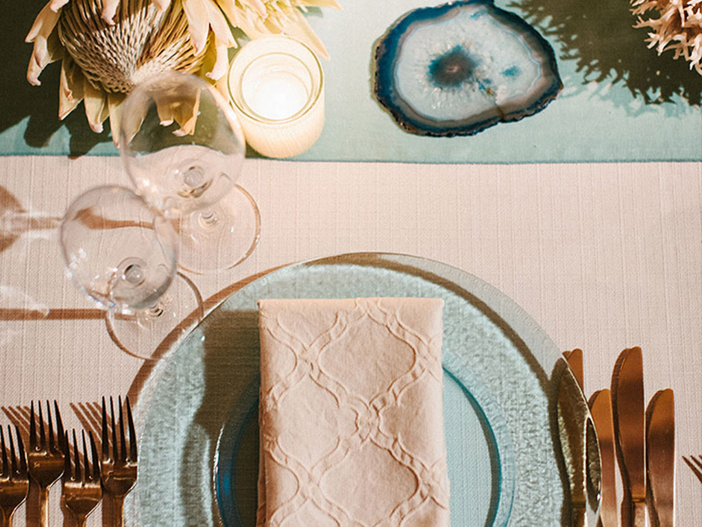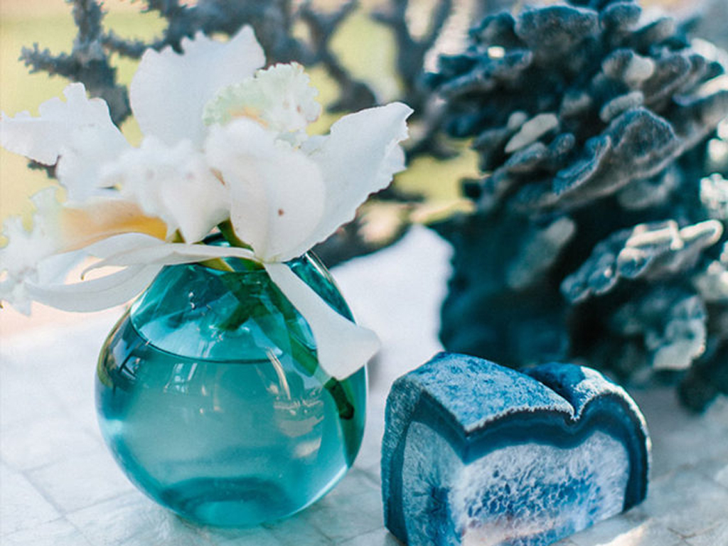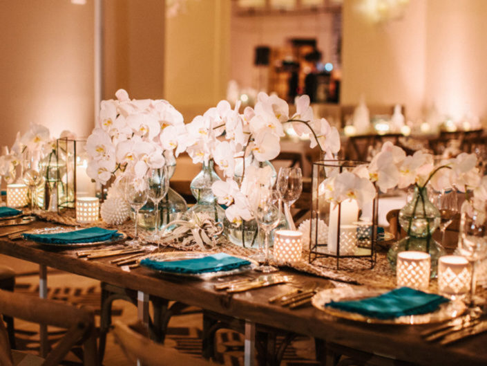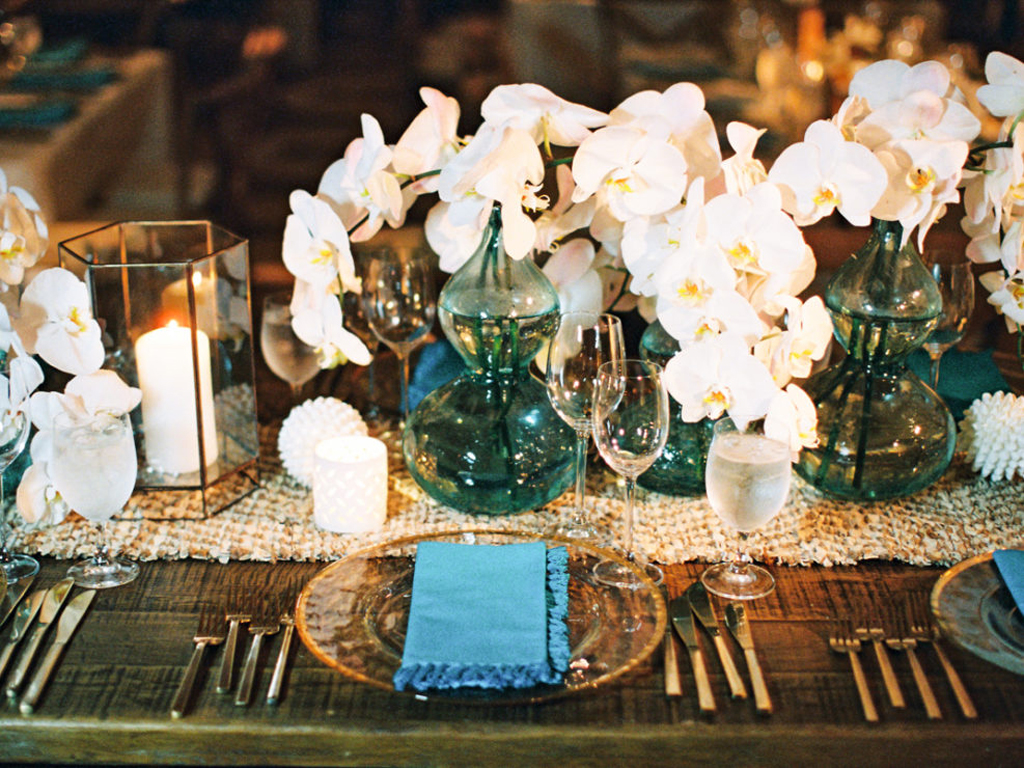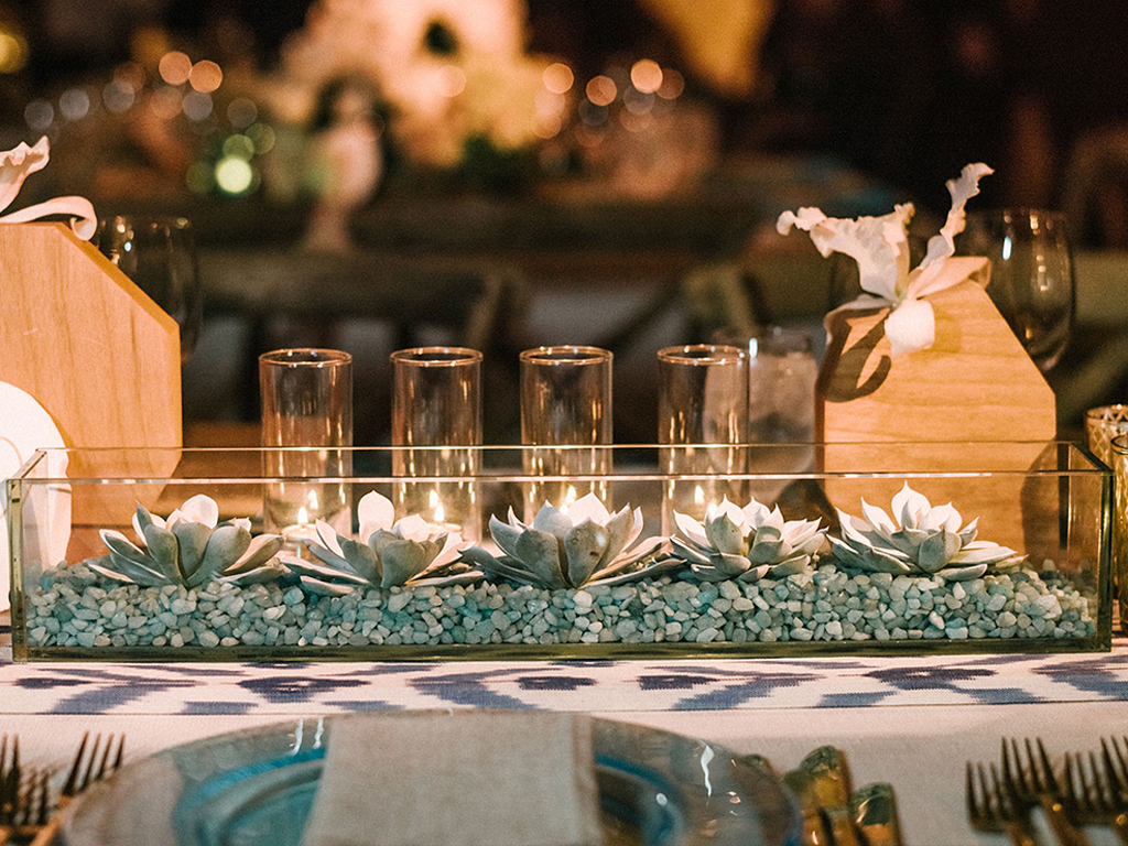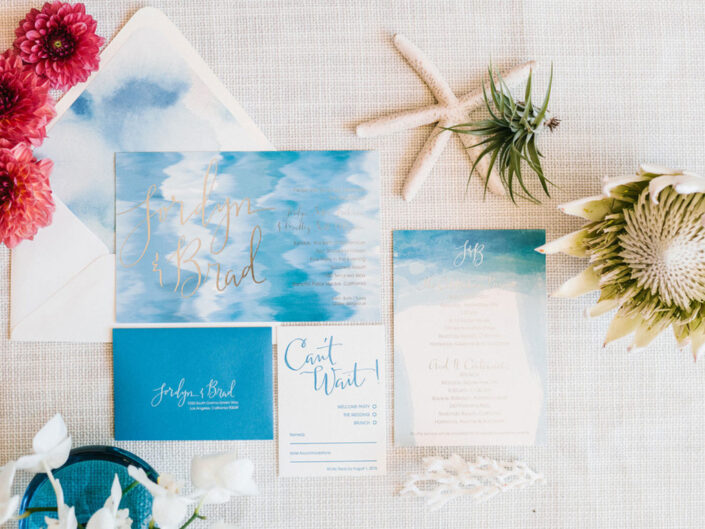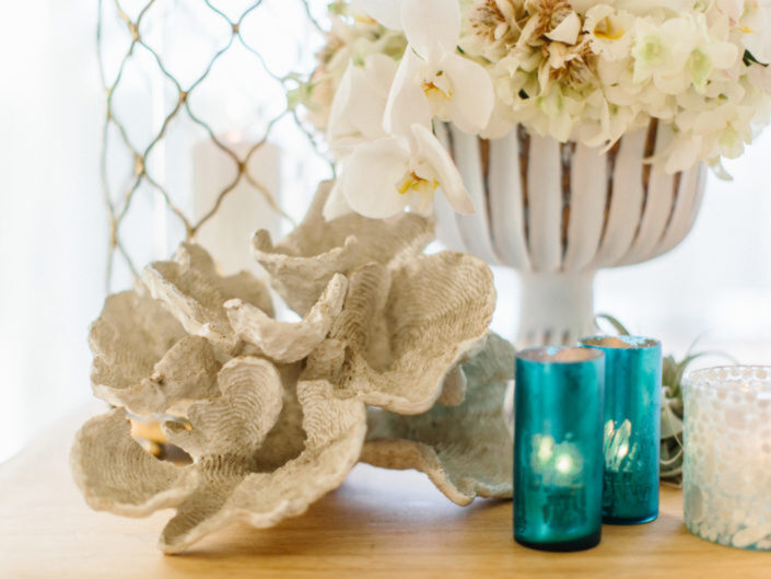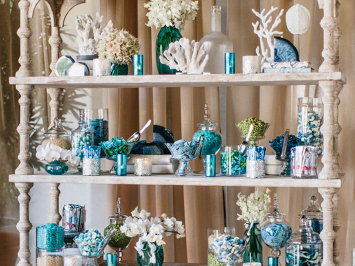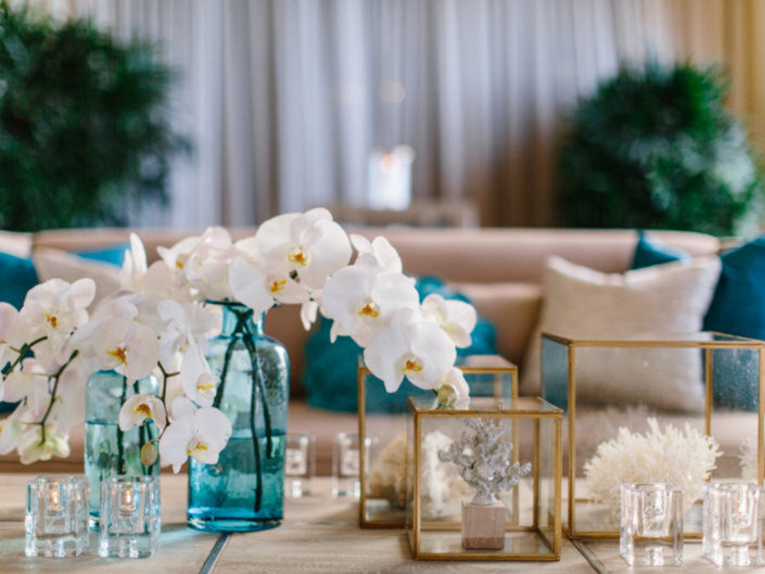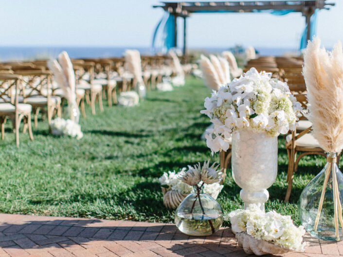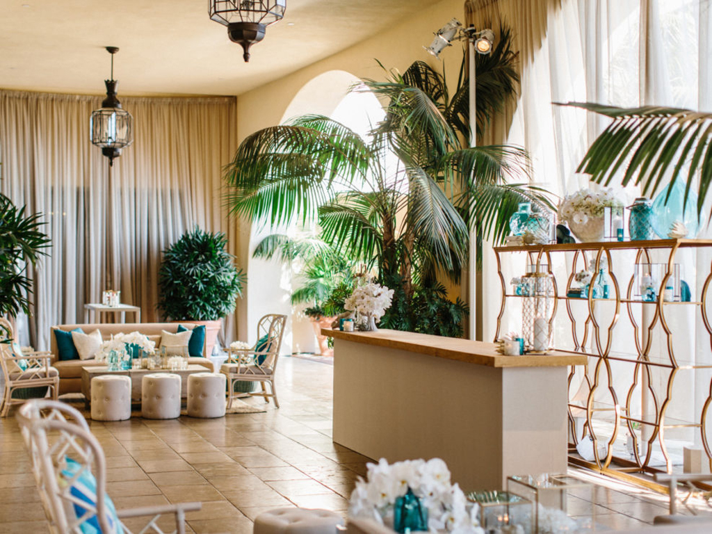 This ocean-inspired wedding celebration at Terranea Resort reflected the couple’s deep love for the water, with a design inspired by colors of the sea, from soft sky blue to deep indigo and teal. Creamy whites, natural elements, and warm metallics added depth to the décor, while textures like jute, rattan, bamboo, parchment, and beach glass brought the coastal vibe to life. A boardwalk-inspired stage set the scene for the evening’s entertainment, while luxe lounges provided a relaxing retreat for guests to enjoy the sound of waves crashing on nearby rocks.